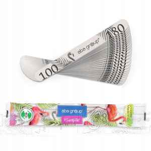 Jednorazowe pilniki do paznokci Aba Group o gradacji 100/180, dedykowane do użytku profesjonalnego. Pilniki przeznaczone są do pracy z masą żelową i akrylową, zalecane do zabiegów wymagających efektywnego, a jednocześnie bezpiecznego opiłowywania.