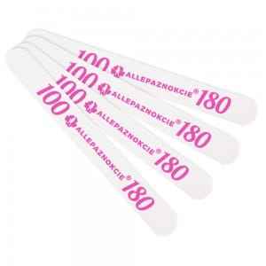 Jednorazowy, uniwersalny pilnik Allepaznokcie o gradacji 180/240 do paznokci naturalnych i przedłużonych o niezwykle trwałych komponentach i długim czasie użytkowania. Cechuje się twardym, niezwykle odpornym na złamania i odkształcenia środkiem.