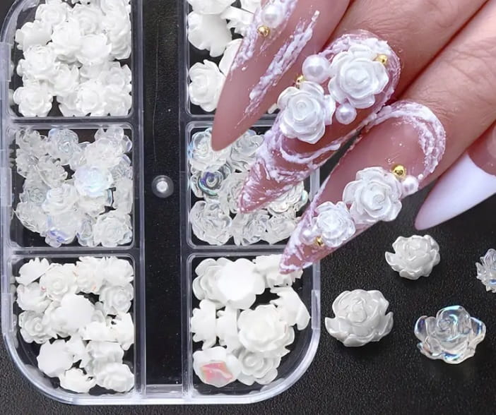 Biżuteria do paznokci trójwymiarowe róże 90 szt