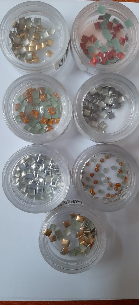 Gustowne ozdoby na paznokcie w formie kwadratowych, płaskich ćwieków. Dodadzą blasku i trójwymiarowości podczas każdego zabiegu upiększania. 50 sztuk pakowane w słoiczek. Okazyjna cena!