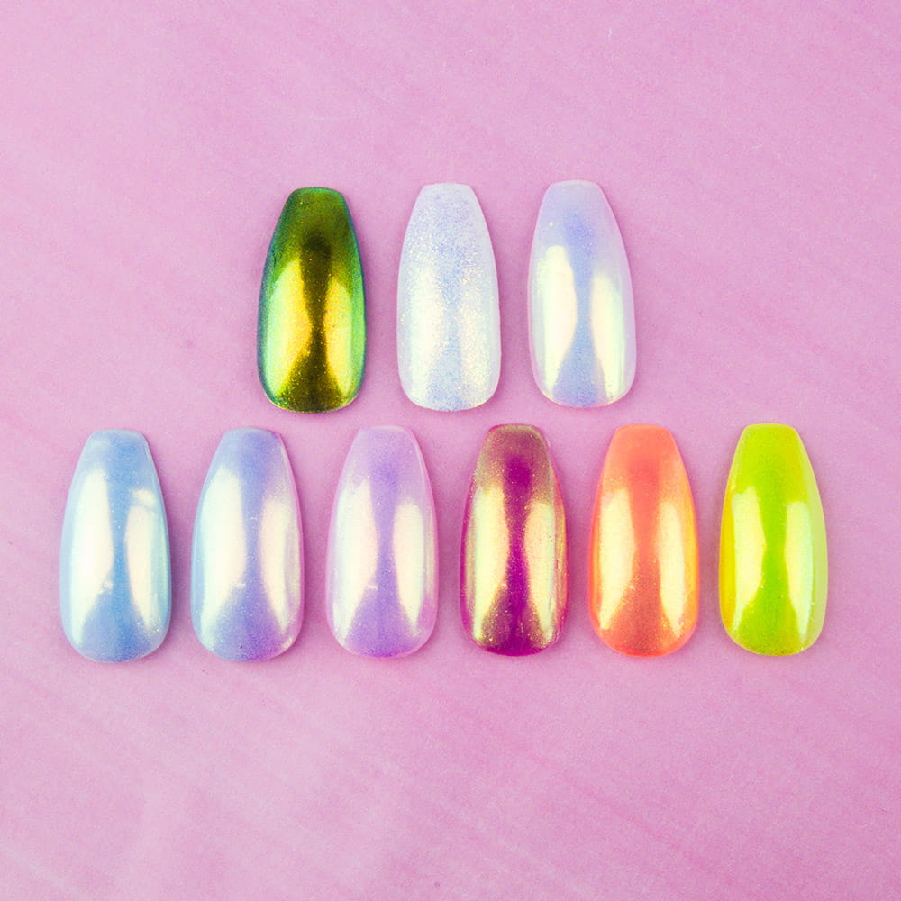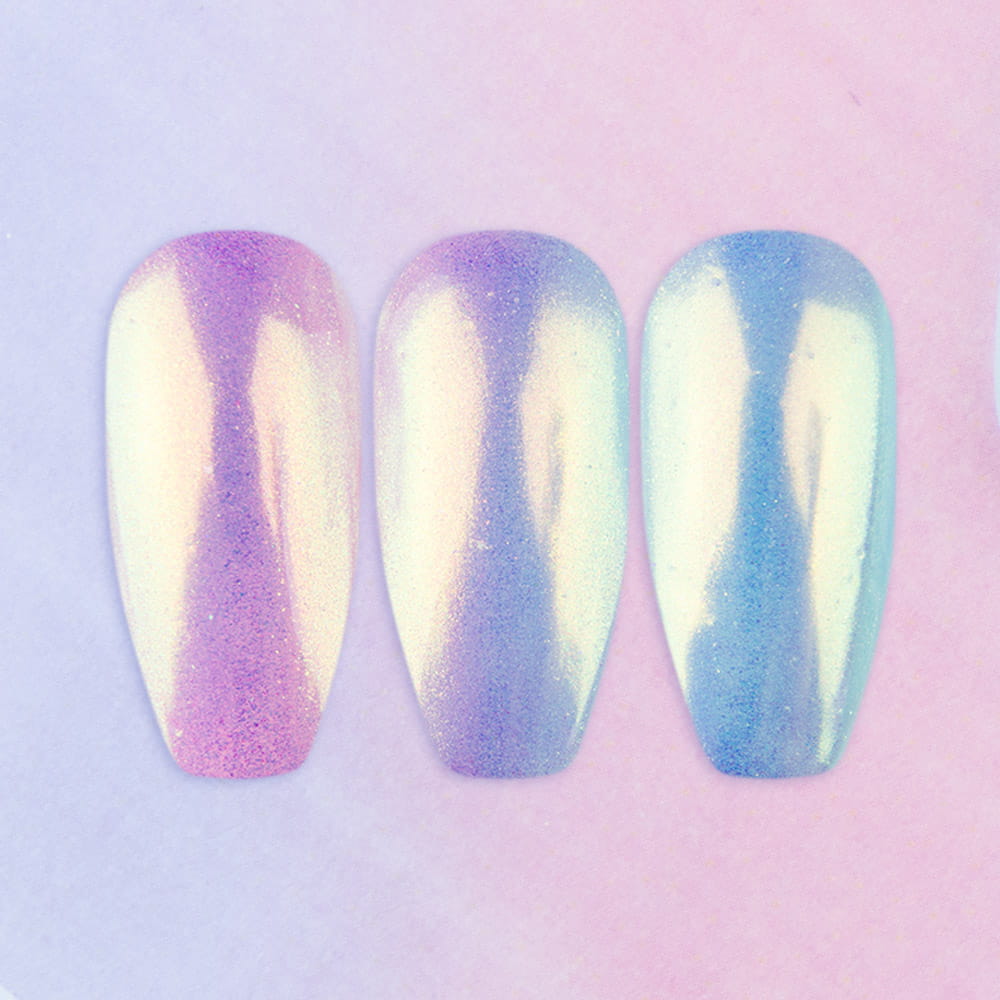 Jeśli cenisz sobie łatwą aplikację, spektakularny efekt oraz nieskazitelny blask wybierz ten efekt! Ciesz się jednolitą taflą w opalizującym kolorze błękitu, różu i złota.