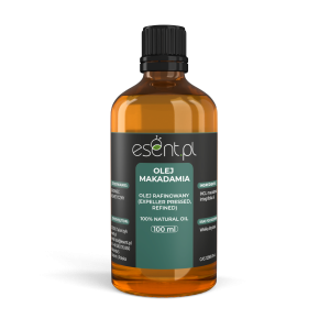 Esent Olej makadamia nierafinowany, tłoczony na zimno - 100 ml ; Poprawia napięcie skóry dojrzałej ; Łagodzi podrażnienia po opalaniu. Wspomaga regenerację.