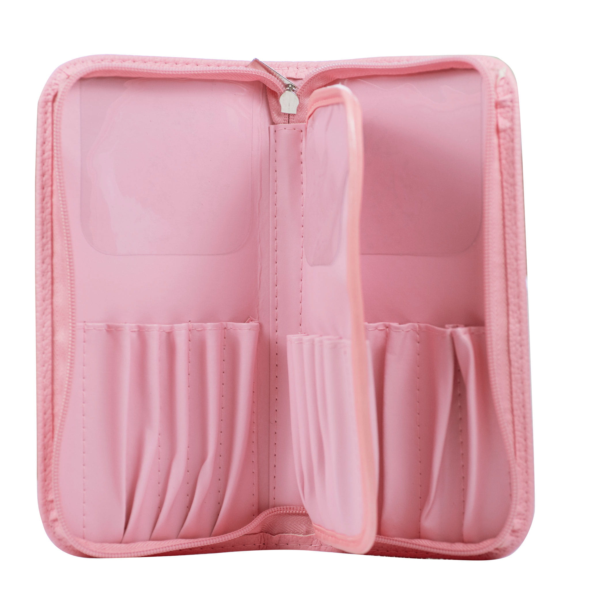 Wykonany z różowej ecoskórki, nie tylko zachwyca swoim wyglądem, ale także skutecznie chroni pędzle przed promieniami słonecznymi i uszkodzeniem włosia.