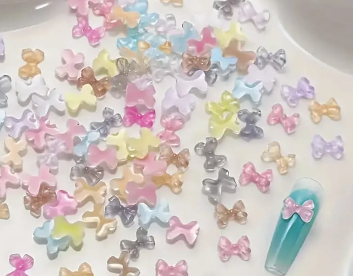Kokardki mini do paznokci żywica 50 szt mix kolor.