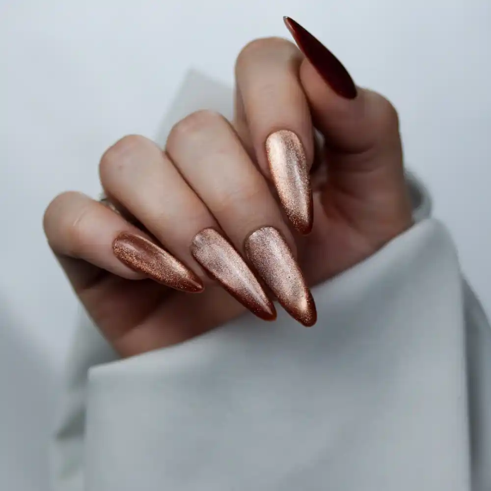 Lakier hybrydowy Cat Eye Viral Jupiter no 497 Boska Nails 6 ml – pełen drobinek brąz z efektem kociego oka