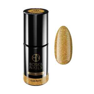 Lakier Hybrydowy Boska Nails w kolorze złotym z delikatnymi drobinkami złota 6 ml Gold Party No 368. Idealny do szalonych stylizacji paznokci na imprezę.