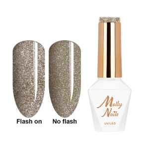 Flashing Lights. To właśnie od światła wszystko się zaczyna… I na świetle kończy! Kolekcja wysublimowanych barw od Molly Nails skrywa w sobie dwie twarze. Pierwsza z nich to przydymiona wersja koloru z delikatnym gwiezdnym pyłem, druga z nich z kolei ukazuje miliony roziskrzonych srebrzystych drobinek skąpanych w pięknych kolorach. To, która wersja będzie widoczna, zależy tylko od światła i jego natężenia!