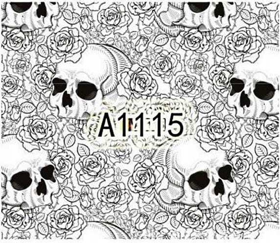 Naklejki Wodne Halloween Czaszki. Wzór naklejki to czaszki w kwiatach nadrukowane na cały arkusz do indywidualnego wycięcia. A1115