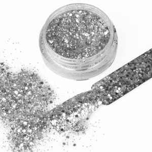Pyłek Do Paznokci Elegance 1G nr 02. Biżuteryjny kolor laserowanego srebra w holoraficznym wydaniu.