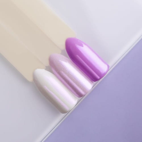 - Po utwardzeniu w lampie topu bez dyspersji / lub z dyspersją, jeżeli oczekujesz mocniejszego perłowego wykończenia (Doctor Top MollyLac lub dedykowany do pyłków typu lustro Mirror Top MollyLac) przez kilka sekund delikatnie wcieraj pyłek pacynką/ pędzlem silikonowym lub gąbeczką.
