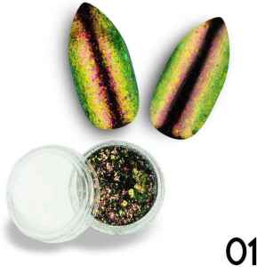 Subtelnie opalizujące refleksy tworzą efekt „galaktycznej tafli”, przyciągając spojrzenia i dodając stylizacji futurystycznego charakteru.