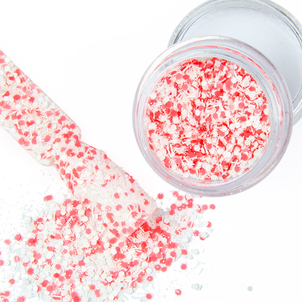 Połączenie drobinek o różnych fakturach i kształtach w kolorze bieli i malinowego różu. idealne dopełnienie każdej stylizacji.