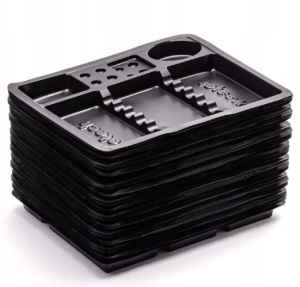 - Są bezpieczne w użytkowaniu, ponieważ nie są dopuszczane do mycia i dezynfekcji, jak to jest w przypadku tacek metalowych.