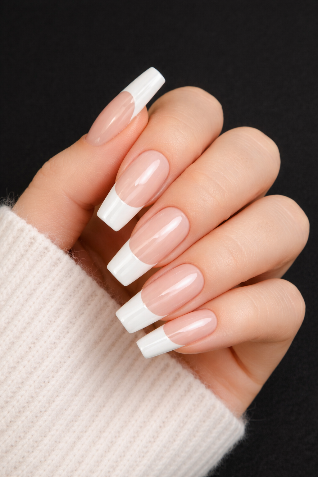 Profesjonalne białe tipsy uzupełniające typu krótka kieszonka to niezbędny element wyposażenia każdej stylistki paznokci.