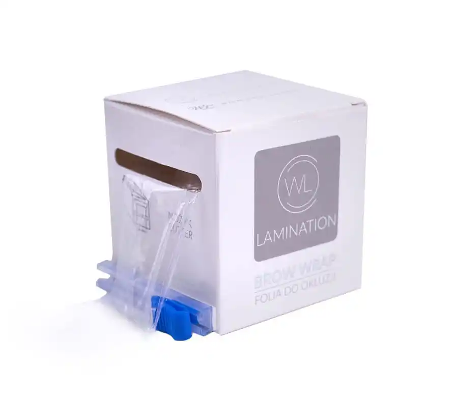 Mini folia do laminacji brwi. Ułatwia wykonanie okluzji podczas zabiegu. Umieszczony w kartoniku nożyk pozwala na szybkie odcięcie potrzebnego fragmentu.