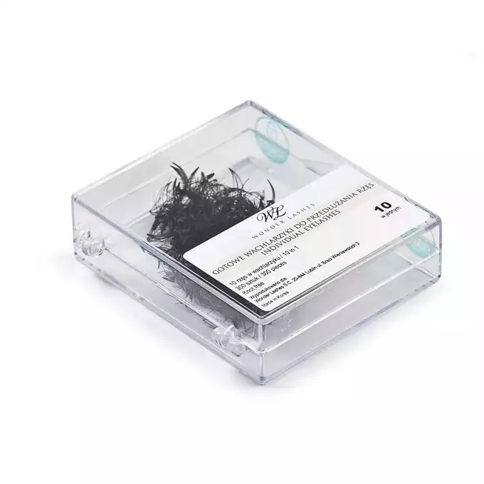 Rzęsy w formie wachlarzyków składających się z 10 pojedynczych rzęs, nie posiadają supełka na dole. Idealne do przyśpieszenia zabiegu przedłużania rzęs metodą objętościową.