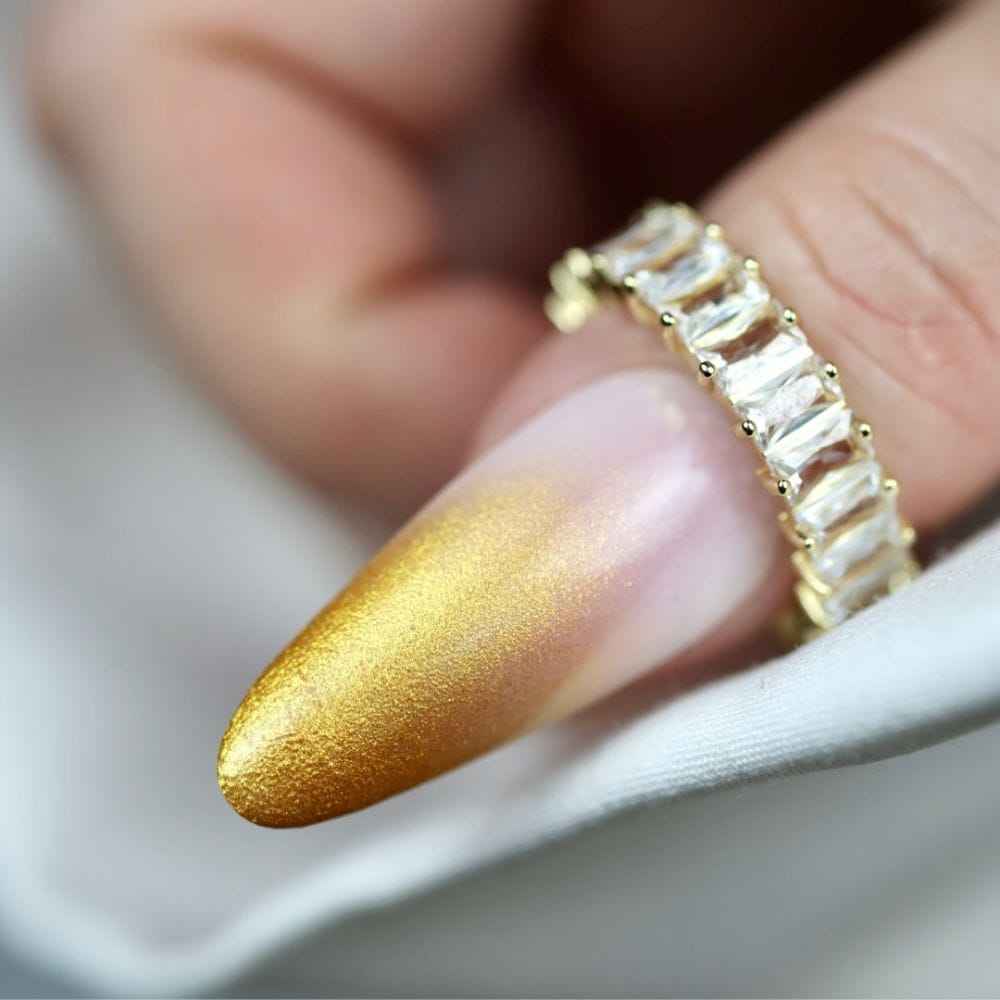 - Idealny do: monochromatycznych stylizacji lub miksu z innymi odcieniami złota — jego błysk nada zupełnie innego wyrazu całemu manicure’owi. Stworzysz z nim także precyzyjne wzory i biżuteryjne ornamenty. Jesteśmy pewne, że będziesz po niego często sięgać w sezonie sylwestrowym.